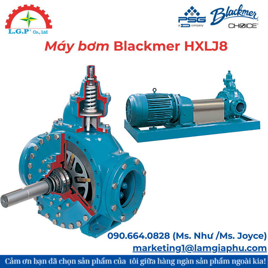 Máy bơm Blackmer HXLJ8 là bơm cánh trượt có vỏ gia nhiệt (jacketed) chuyên dùng cho các ứng dụng chất lỏng có độ nhớt cao và nhiệt độ cao, như dầu FO, molasses, mỡ công nghiệp và nhựa đường. Đây là dòng bơm công nghiệp nặng thuộc Heavy Duty Line, được thiết kế với cổng 8 inch ANSI, lưu lượng tối đa 1.190 gpm (4.505 L/phút) và khả năng hoạt động trong môi trường khắc nghiệt.