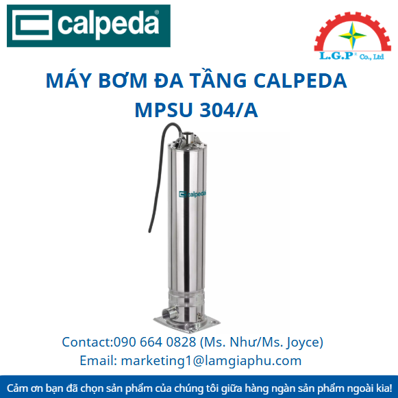 LGP Co., Ltd– Chúng tôi cung cấp Máy bơm đa tầng Calpeda MPSU 304/A, nổi tiếng về chất lượng và hiệu suất vượt trội trên thị trường. Sản phẩm của chúng tôi được khách hàng đánh giá cao về độ tin cậy và chất lượng tiêu chuẩn. Các sản phẩm được kiểm tra cẩn thận, mua từ các nguồn uy tín và có nhu cầu cao. Chúng tôi cung cấp trên toàn quốc với giá cả cạnh tranh. Ngoài ra, chúng tôi còn cung cấp các sản phẩm của các thương hiệu như Silvent, Vikan, Air Torque, Jumo, Yudian,…