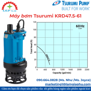 Máy bơm Tsurumi KRD47.5-61 là một model thuộc dòng bơm chìm KRD công suất lớn, chuyên dụng cho hút bùn, nước thải nặng, nước có bùn cát, chất rắn lơ lửng, với thiết kế đặc biệt có cánh khuấy (agitator) giúp khuấy trộn bùn, bẻ vụn cặn và duy trì chất lỏng ở trạng thái dễ bơm. Bơm sử dụng motor 4 cực (4-pole), tốc độ 1800 vòng/phút, điện áp 3 pha và đạt hiệu suất cao, độ bền lâu dài trong các môi trường khắc nghiệt như công trường, hố móng, hầm mỏ, hoặc trạm bơm thải công nghiệp.