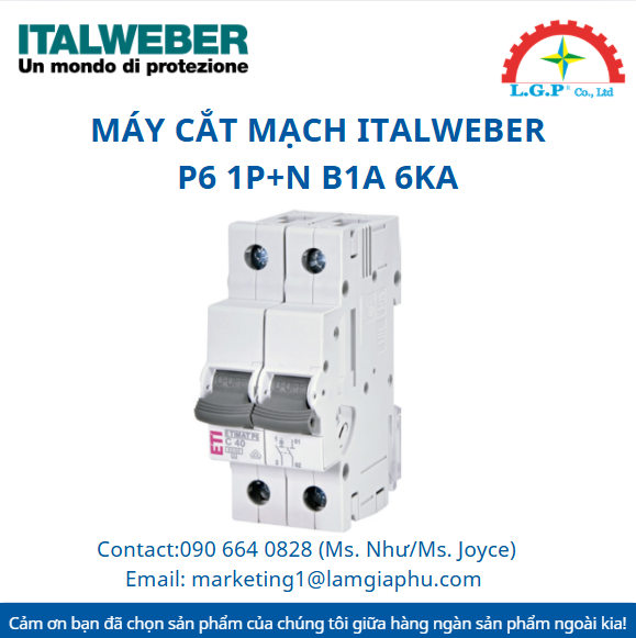Máy cắt mạch ITALWEBER P6 1P+N B1A 6kA