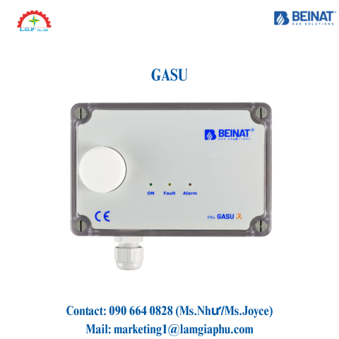 Máy đo khí gia dụng Beinat GASU sử dụng cảm biến xúc tác để phát hiện khí cháy nổ (Mêtan, LPG) ở ngưỡng 10% LEL, tích hợp rơ-le điều khiển van điện từ, còi và các thiết bị báo động ngoài, phù hợp giám sát an toàn cho nhiều khu vực dùng gas.