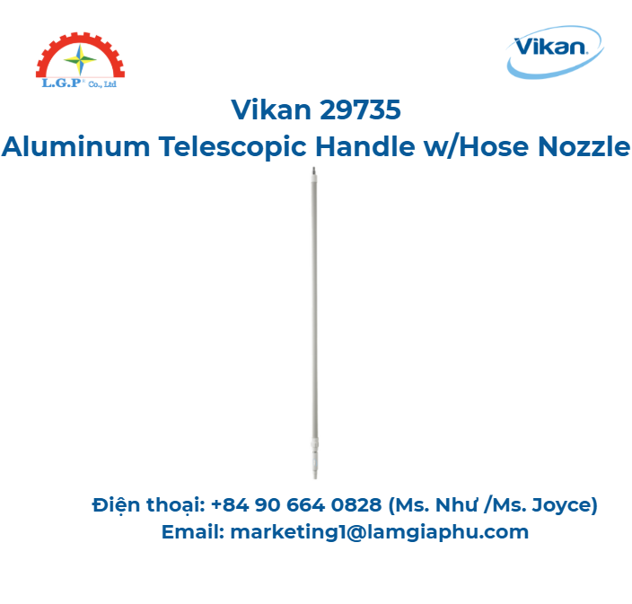 Tay cầm bằng nhôm, Vikan 29735, 1615 – 2780 mm, Trắng