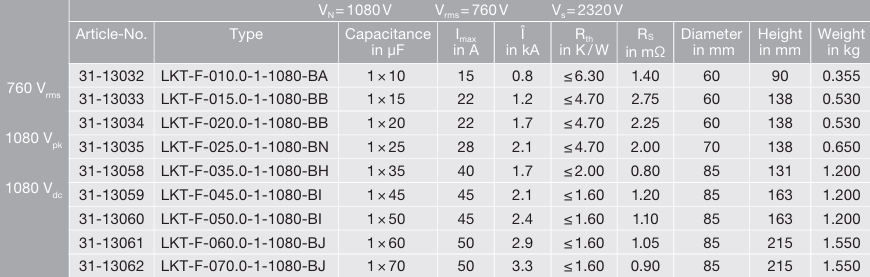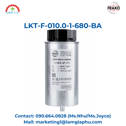 Bên cạnh đó, ngoài Tụ điện 1-Phase Frako LKT-F-010.0-1-680-BA chúng tôi còn cung cấp các model khác như:
