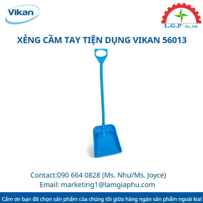 VIKAN 56013 | Xẻng cầm tay tiện dụng Vikan 56013 là xẻng xúc công nghiệp thiết kế công thái học (ergonomic), dùng để di chuyển lượng lớn nguyên liệu thực phẩm, phế phẩm thực phẩm hoặc vật liệu rời như ngũ cốc trong nhà máy chế biến thực phẩm.