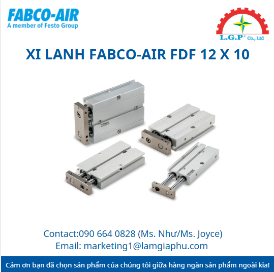 Xi lanh Fabco-Air FDF 12 x 10 có thiết kế chống xoay hiệu quả và lực đẩy gấp đôi, chuyên dùng cho các ứng dụng tự động hóa chính xác trong không gian hẹp.