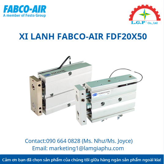 LGP Co., Ltd– Chúng tôi cung cấp Xi lanh FABCO-AIR FDF20x50, nổi tiếng về chất lượng và hiệu suất vượt trội trên thị trường. Sản phẩm của chúng tôi được khách hàng đánh giá cao về độ tin cậy và chất lượng tiêu chuẩn. Các sản phẩm được kiểm tra cẩn thận, mua từ các nguồn uy tín và có nhu cầu cao. Chúng tôi cung cấp trên toàn quốc với giá cả cạnh tranh. Ngoài ra, chúng tôi còn cung cấp các sản phẩm của các thương hiệu như Silvent, Vikan, Air Torque, Jumo, Yudian,…