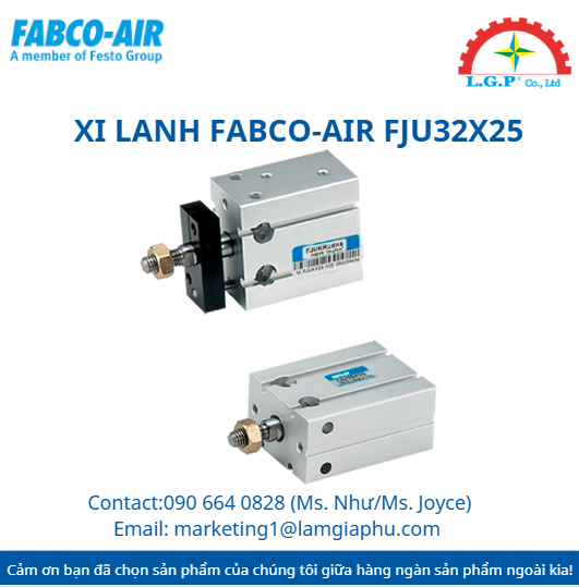 LGP Co., Ltd– Chúng tôi cung cấp Xi lanh FABCO-AIR FJU32X25, nổi tiếng về chất lượng và hiệu suất vượt trội trên thị trường. Sản phẩm của chúng tôi được khách hàng đánh giá cao về độ tin cậy và chất lượng tiêu chuẩn. Các sản phẩm được kiểm tra cẩn thận, mua từ các nguồn uy tín và có nhu cầu cao. Chúng tôi cung cấp trên toàn quốc với giá cả cạnh tranh. Ngoài ra, chúng tôi còn cung cấp các sản phẩm của các thương hiệu như Silvent, Vikan, Air Torque, Jumo, Yudian,…